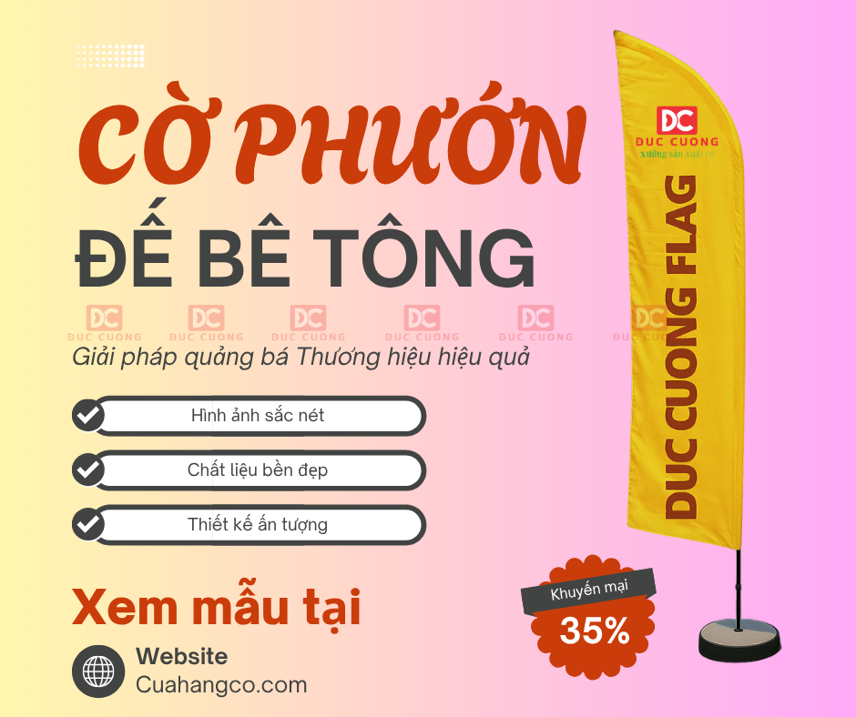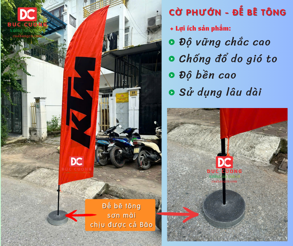 👉 In Cờ Đức Cường là đơn vị hàng đầu chuyên sản xuất và cung cấp chân đế bê tông chất lượng cao, đi kèm dịch vụ in cờ theo yêu cầu, thiết kế miễn phí và giao hàng tận nơi.